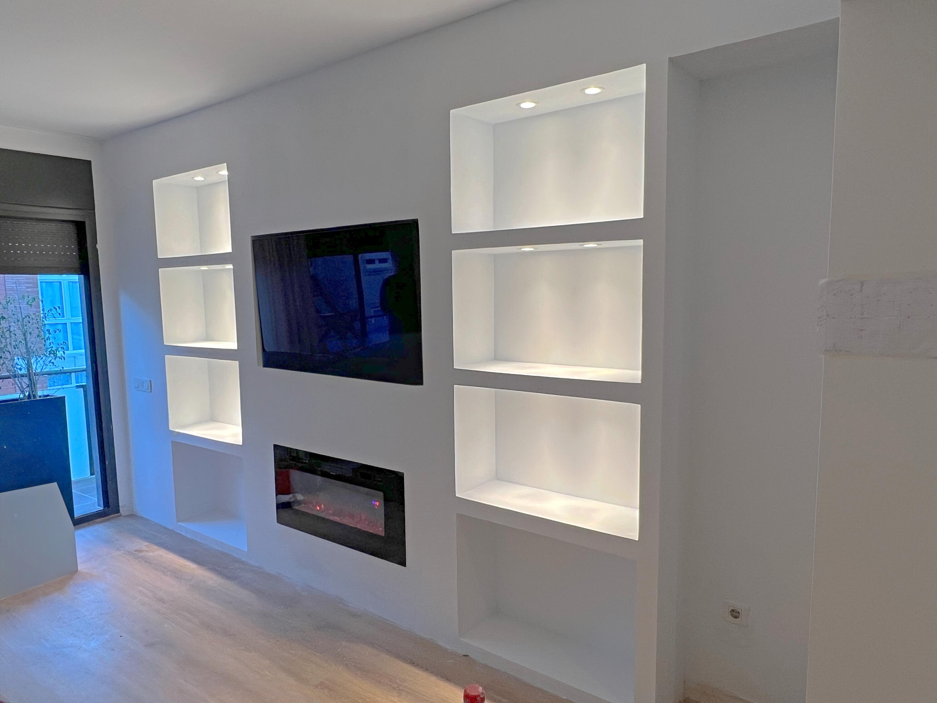 Diseñamos y ejecutamos soluciones personalizadas que transforman cualquier espacio. Integración de mobiliario en pladur con sistemas de iluminación LED para un resultado elegante, moderno y lleno de personalidad.